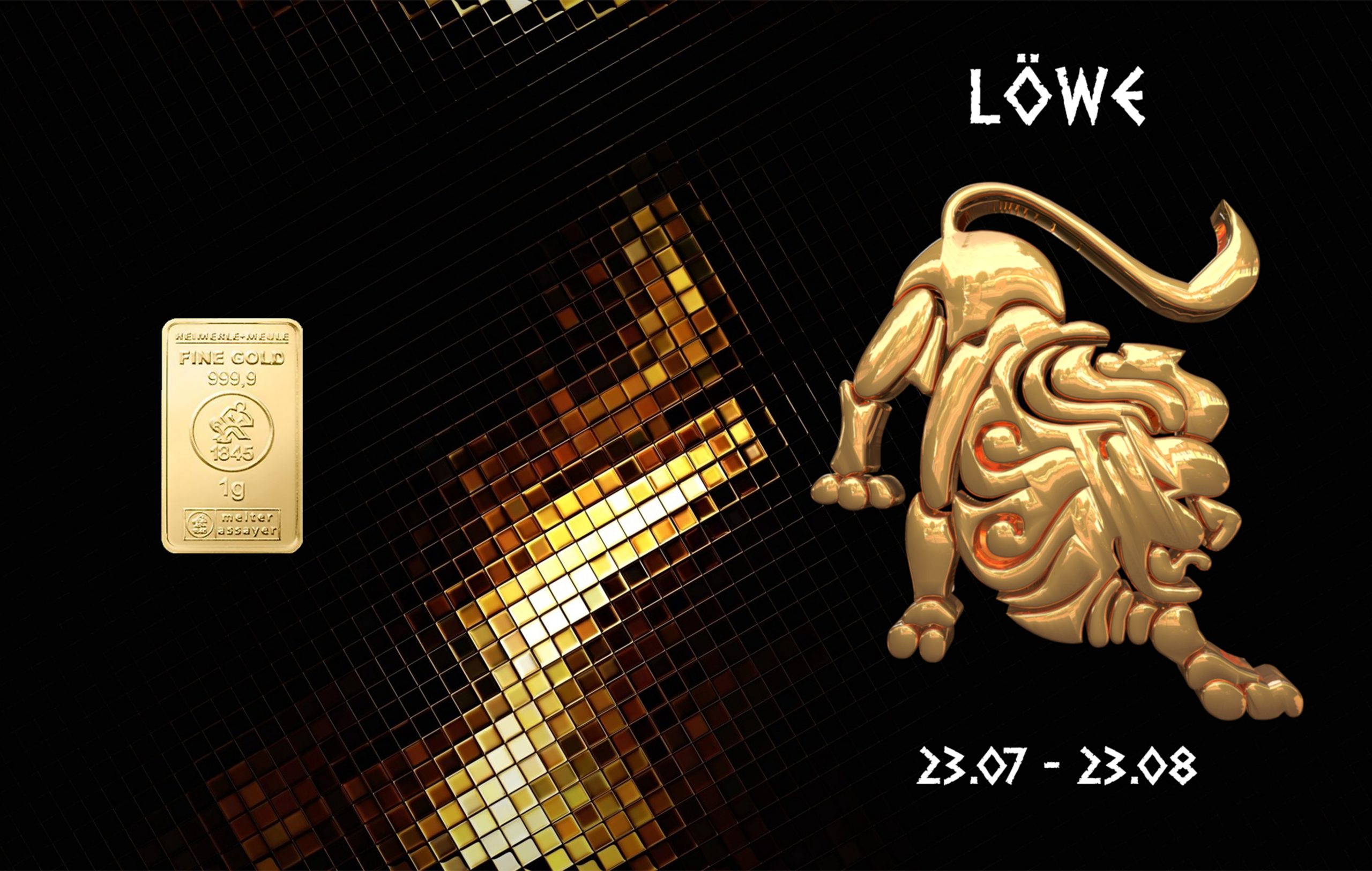 1 Gramm Feingold Barren – Motivkarte „Sternzeichen Löwe“